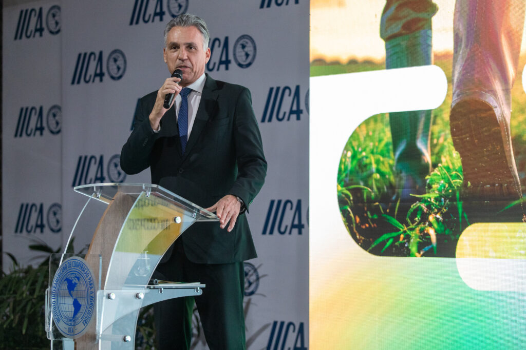 “Nós estamos nesta jornada deste o início do ano, junto ao IICA, visando trabalhar sobre um documento que possa realçar o papel das tecnologias para a redução do aquecimento global e para o enfrentamento da insegurança alimentar. Esse é o nosso objetivo na COP30. Preparamos esse documento, a várias mãos, para que possamos levar para a discussão dados técnicos e fundamentação científica do que estamos vivendo. Nós temos uma agricultura tropical, que é um exemplo e uma referência para a agricultura do mundo, e cada vez mais temos caminhado para práticas mais sustentáveis, como: plantio direto, integração lavoura-pecuária-floresta, práticas de manejo, complementariedade de tecnologias, que tornam nossa agricultura mais produtiva e resiliente”, considerou o diretor-presidente da CropLife Brasil, Eduardo Leão, em seu discurso oficial.