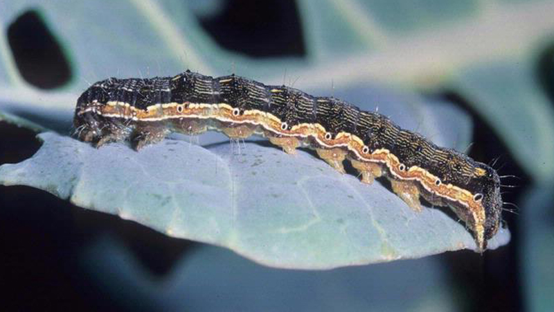 Identificada no Brasil em 2013, a Helicoverpa armigera é uma lagarta que preocupa muito os agricultores por conta do seu poder destrutivo. É considerada polífaga, ou seja, se alimenta de várias culturas, o que dificulta seu controle – já que, no Brasil, há plantações durante todo o ano – e eleva seu potencial de prejuízo na lavoura. A praga se multiplica rapidamente e ataca principalmente as estruturas reprodutivas da planta. Além da soja e do algodão, a lagarta também utiliza como hospedeiro os cultivos de milho, feijão, sorgo e tomate, além de outras espécies, o que torna seu manejo ainda mais complexo.
