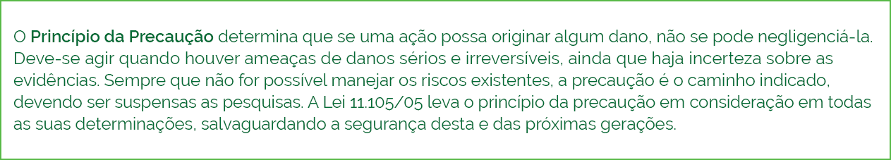A Lei 11.105/05 estabelece três diretrizes principais:
