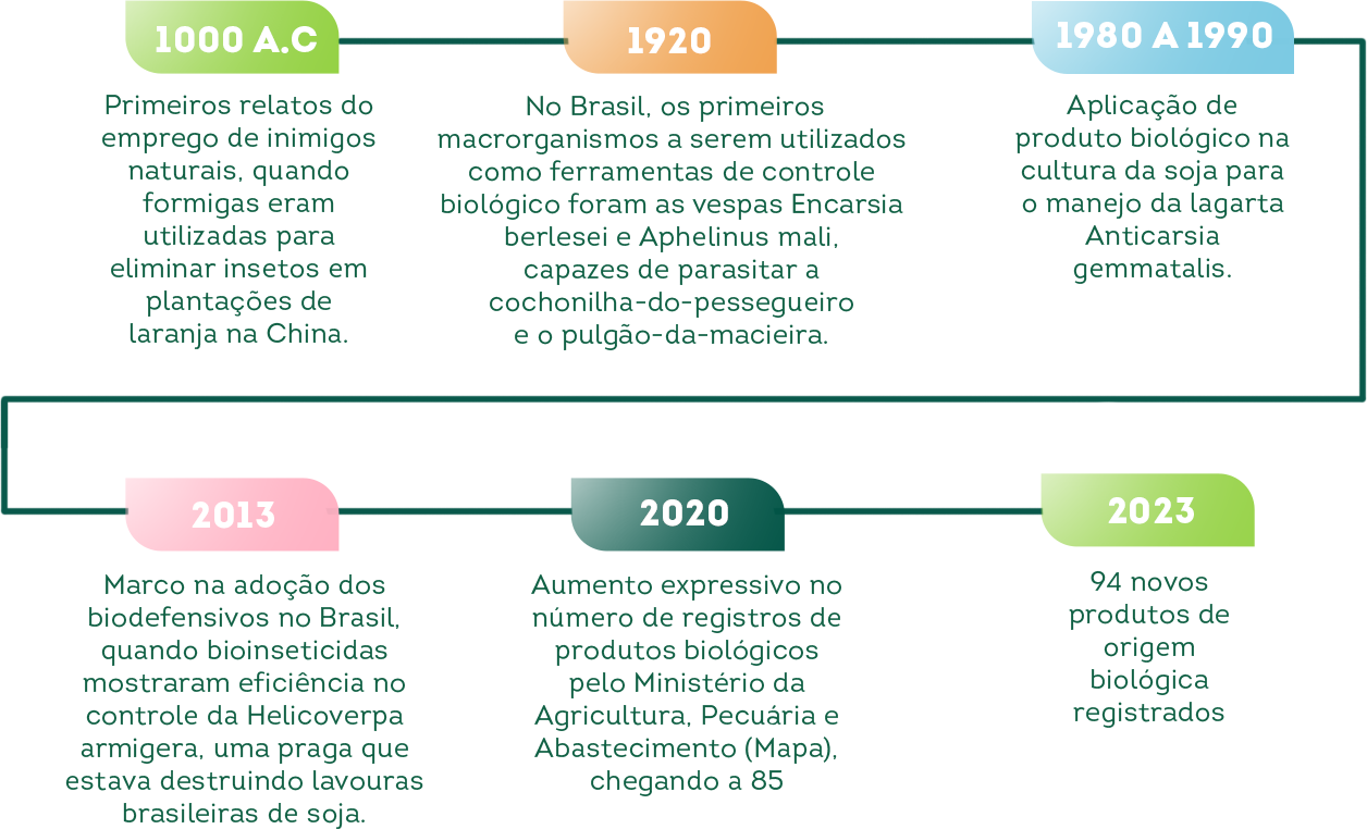 O segmento mais representativo entre os bioinsumos são os produtos de controle biológico, estimados em 57% do valor acima. A previsão é que eles devem continuar como representantes da maior fatia desse mercado.