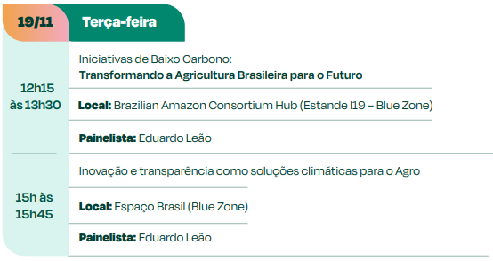 Entidade participará de painéis e encontros com autoridades e representantes do setor agrícola para debater temas como economia de baixo carbono, produção sustentável e inovações para implementação do Plano ABC+