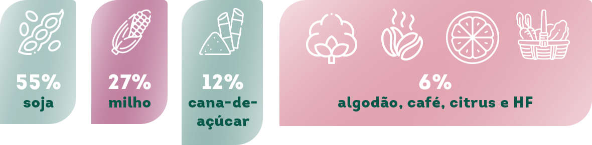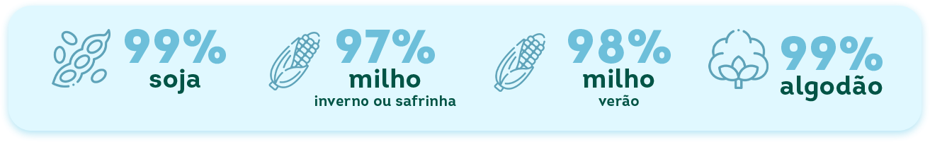 Os benefícios a partir da redução na aplicação de defensivos e da economia de área cultivada impactam diretamente nas emissões de gases de efeito estufa (GEE) decorrentes do plantio de cada uma das culturas.