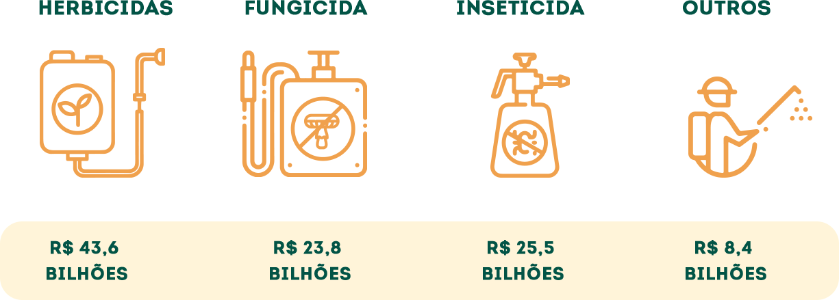 FATURAMENTO Segundo levantamento CropLife Brasil, no ano de 2022 o segmento de defensivos químicos obteve um faturamento de R$101 bilhões no Brasil, dividido nas seguintes categorias: