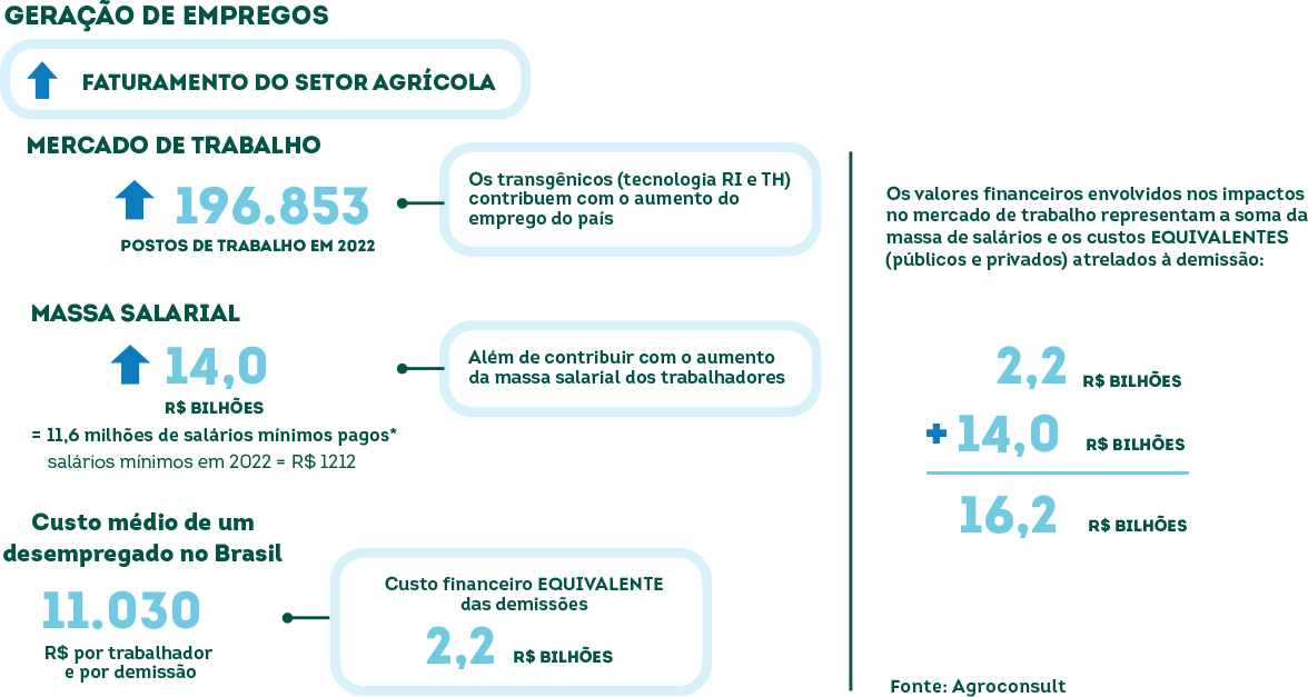EMPREGOS E RENDA Um outro aspecto decorrente da biotecnologia é o número de postos adicionais de trabalho vinculados exclusivamente aos ganhos de produtividade proporcionados pelos transgênicos ao longo das últimas duas décadas.