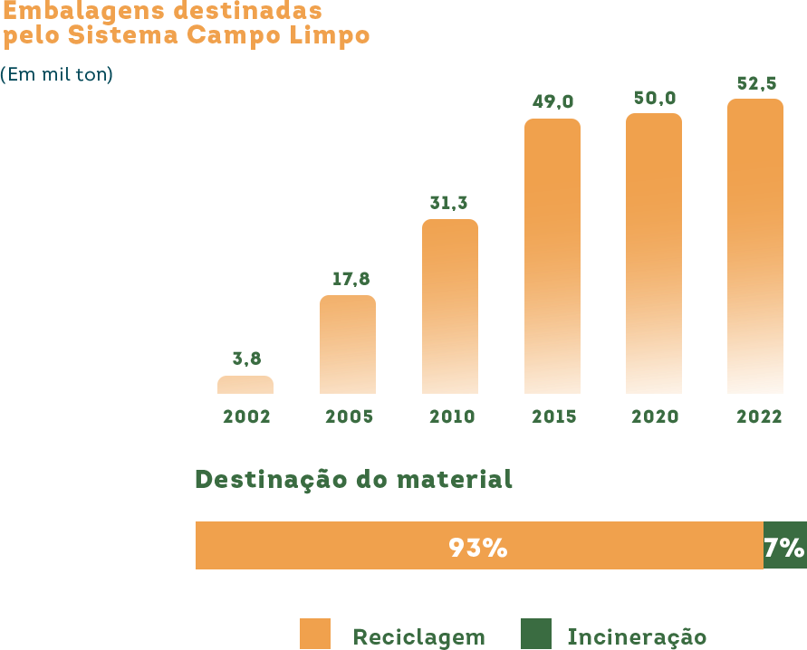 O setor de Defensivos Químicos é benchmark no que tange a logística reversa de embalagens uma vez que cerca de 80% das embalagens são retornadas e 93% dessas são recicladas.