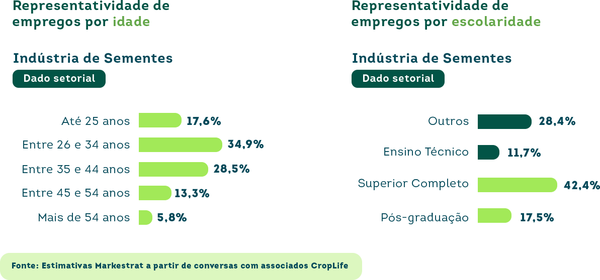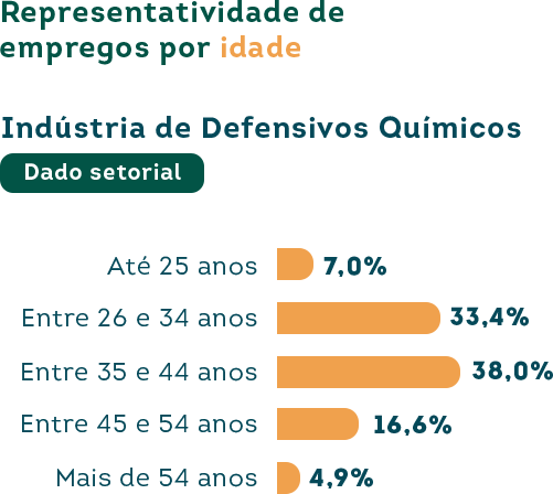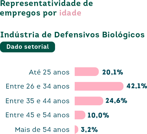 EMPREGOS E SALÁRIOS A renda média mensal dos trabalhadores da indústria de sementes foi estimada em R$ 7.091,09 em 2022, superiores à média nacional, refletindo a alta escolaridade e as oportunidades de crescimento profissional no setor. A força de trabalho é jovem: 81% dos trabalhadores têm até 44 anos.