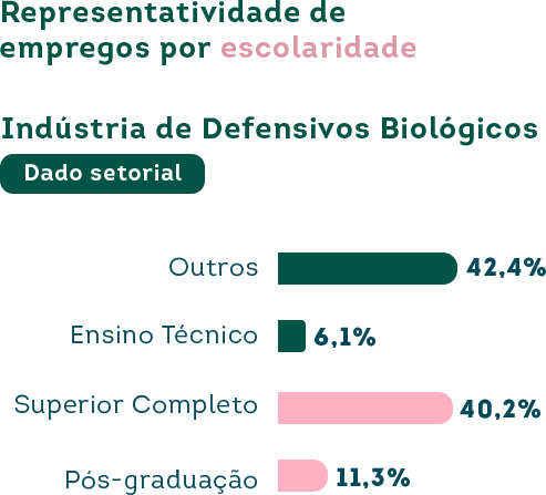 A alta qualificação demandada pelo setor se deve à natureza técnica e especializada das atividades desenvolvidas uma vez que as empresas de biológicos operam em ambiente regulamentado e exigem compreensão de conceitos nas áreas de química, biologia, engenharia, agronomia e outras.