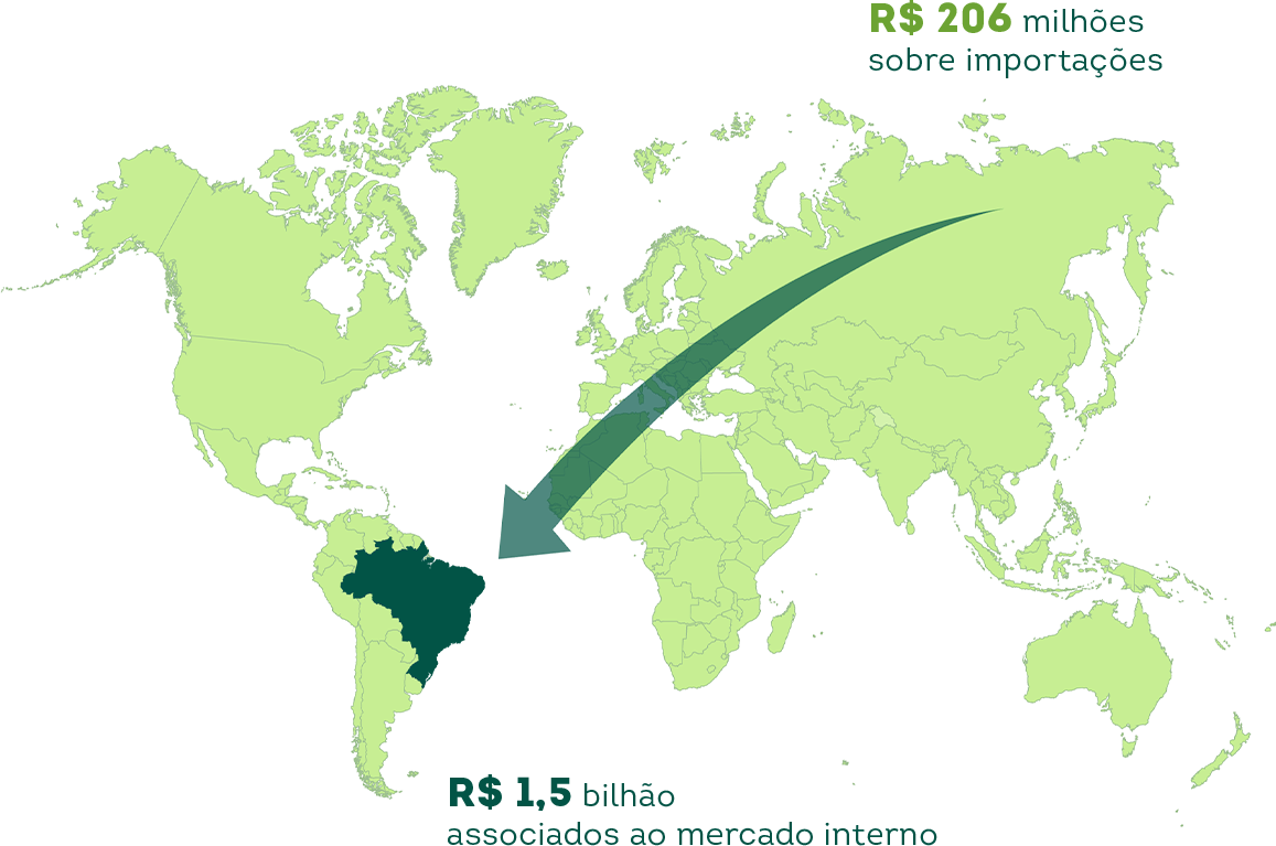 IMPOSTOS Os impostos arrecadados pela indústria de sementes e germoplasma representam cerca de 6% do faturamento total, tendo sido arrecadados cerca de R$1,7 bilhão em tributos no ano de 2022. Desse valor, R$1,5 bilhão são referentes à movimentação interna e R$206,4 milhões são decorrentes do processo de importação.