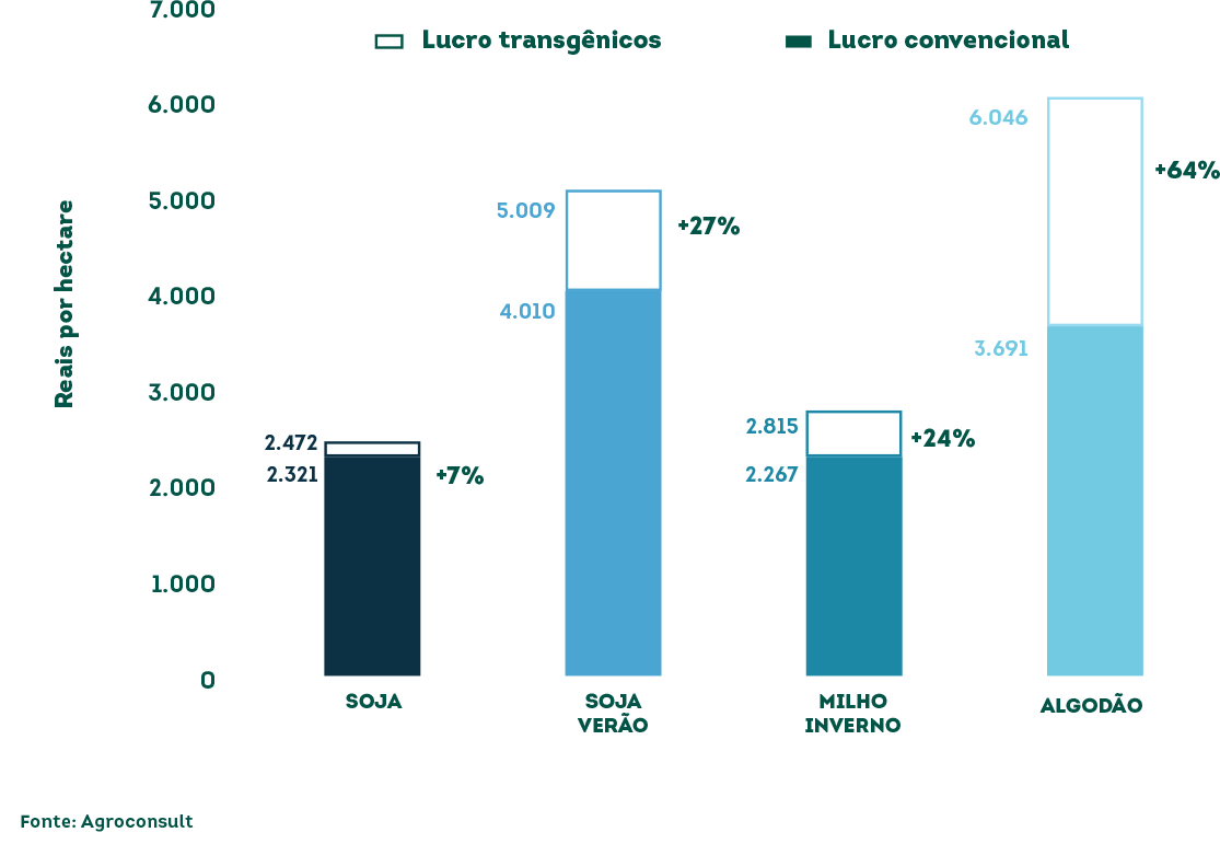 Os ganhos de produtividade fizeram com que as sementes transgênicas fossem responsáveis por um aumento no volume de produção de grãos.