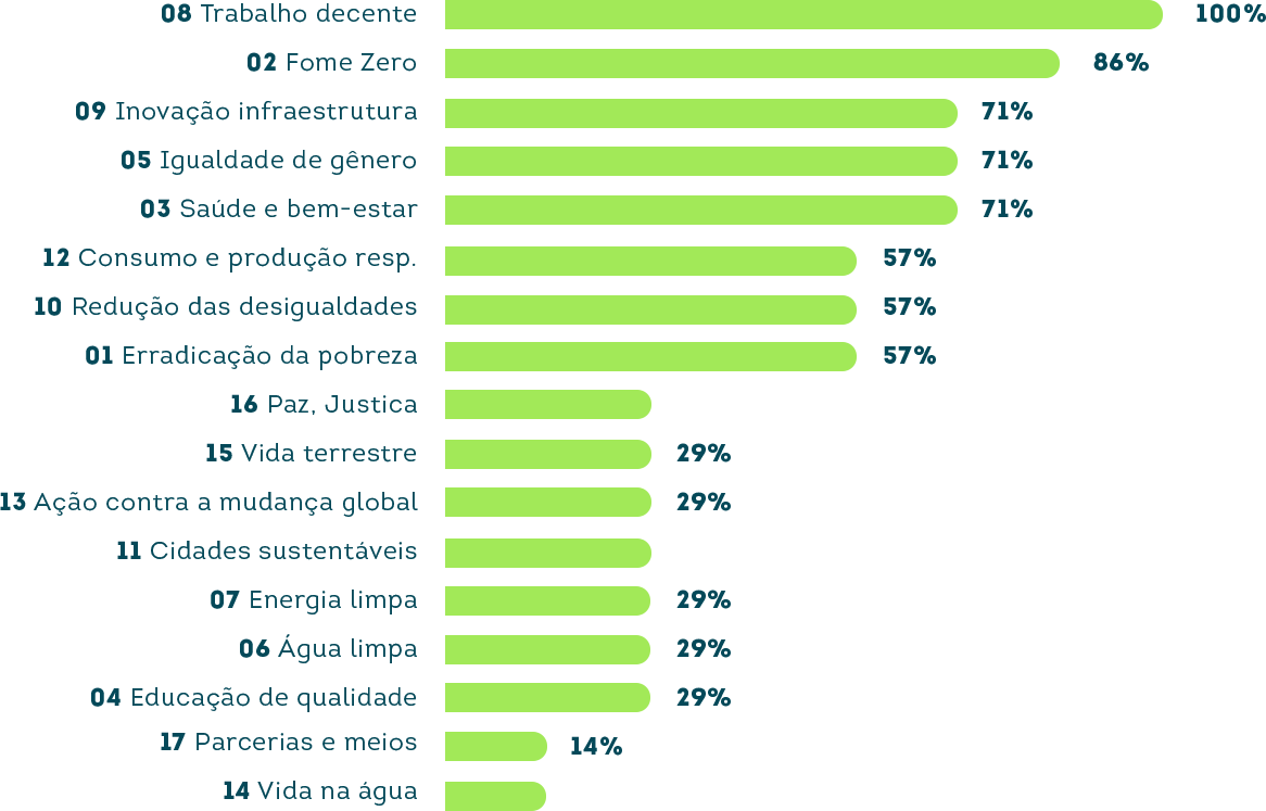 ESG (Environmental, Social, and Governance) Ações em Trabalho decente, Fome Zero e Inovação em infraestrutura são as ODS mais endereçadas nas iniciativas de ESG da indústria de sementes.