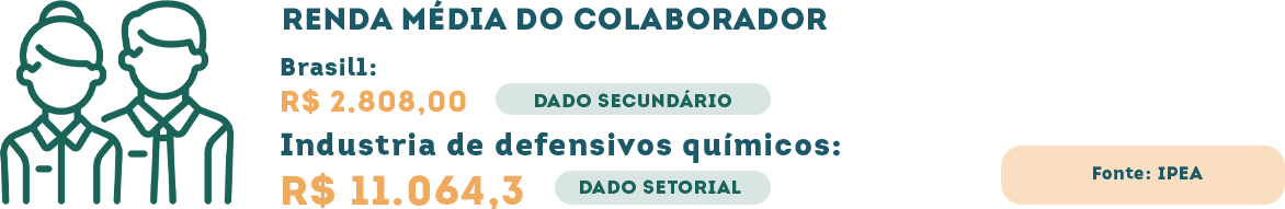 EMPREGOS E SALÁRIOS A indústria de defensivos químicos emprega 13.972 mil pessoas diretamente (2022) e a renda média mensal dos trabalhadores do setor é, em média, 3,9x maior do que a média nacional.