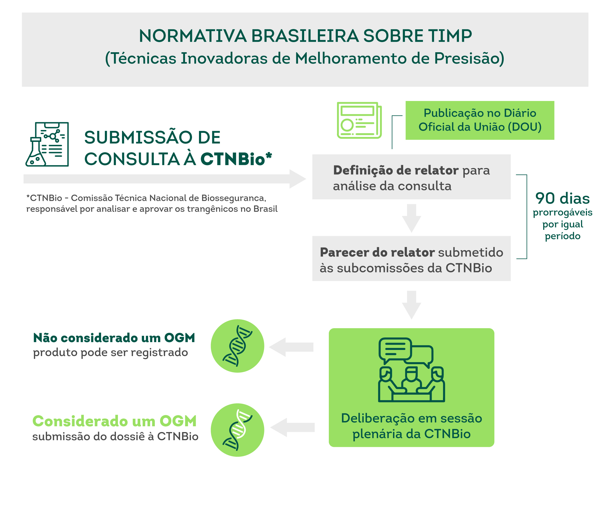 Por exemplo, temos a RN n° 16 de 15 de janeiro de 2018, normativa que considera algumas ferramentas de biologia molecular, estabelecendo o conceito de Técnicas Inovadoras de Melhoramento de Precisão (TIMPs).