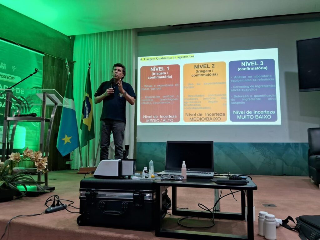 Durante o encontro, o auditor fiscal federal, Marcelo Bressan, fez uma demonstração do espectrômetro, ferramenta do MAPA que faz análise rápida de amostras de agrotóxicos ilegais. Com o equipamento, é possível identificar se o determinado produto apresenta adulteração, dentre outras atribuições.