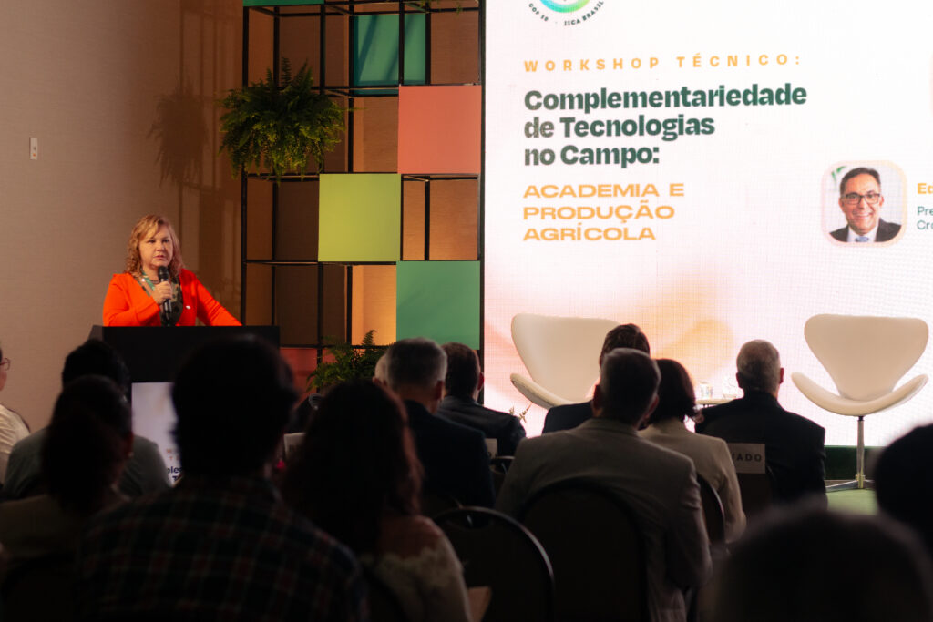 Ana Paula Contador, conectou papel da pesquisa no desenvolvimento de tecnologias agrícolas “A academia tem a missão de estar na vanguarda do conhecimento e garantir que esse saber chegue a quem precisa. É essencial transformar pesquisas em soluções práticas, conectando ciência, setor privado e políticas públicas para garantir produtividade e rentabilidade”, posicionou em seu discurso.