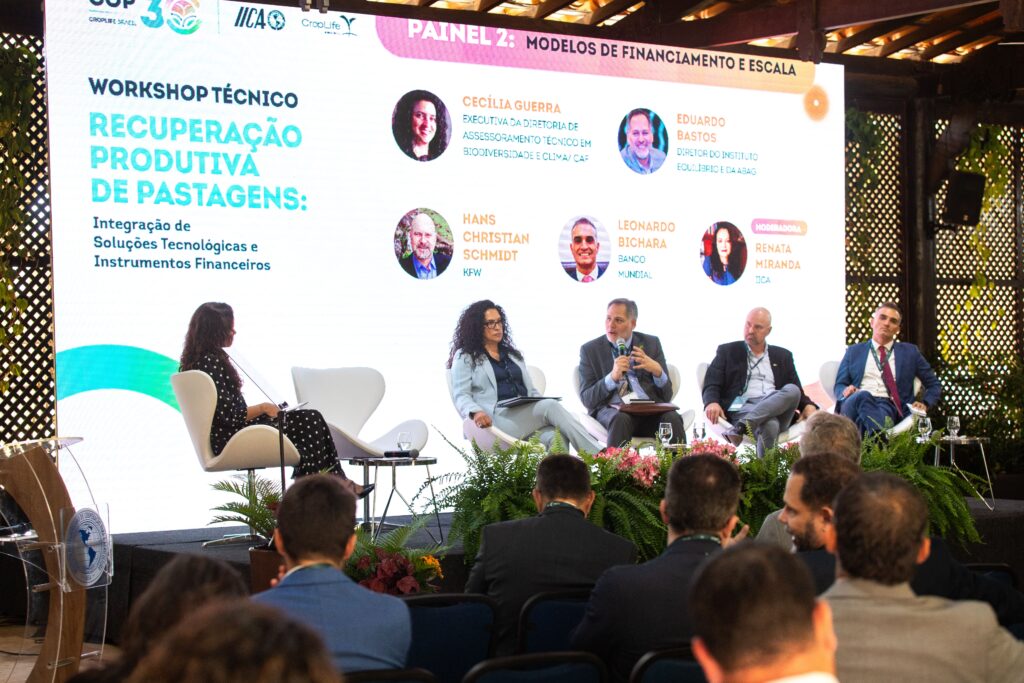 O segundo painel do Workshop Técnico realizado pela CropLife Brasil e pelo Instituto Interamericano de Cooperação para a Agricultura (IICA), nesta quarta-feira (13), teve como temática o acesso a modelos de financiamento pela cadeia produtiva em suporte a recuperação de pastagens degradadas. No diálogo do seminário, especialistas do setor público e privado conversaram sobre o cenário do Brasil em termos de linhas de crédito, alternativas de investimentos e fontes de recurso e contrapartidas que os produtores precisam assumir em troca do benefício fiscal.